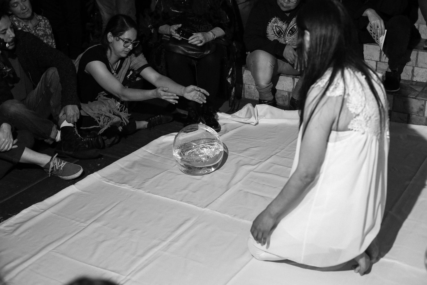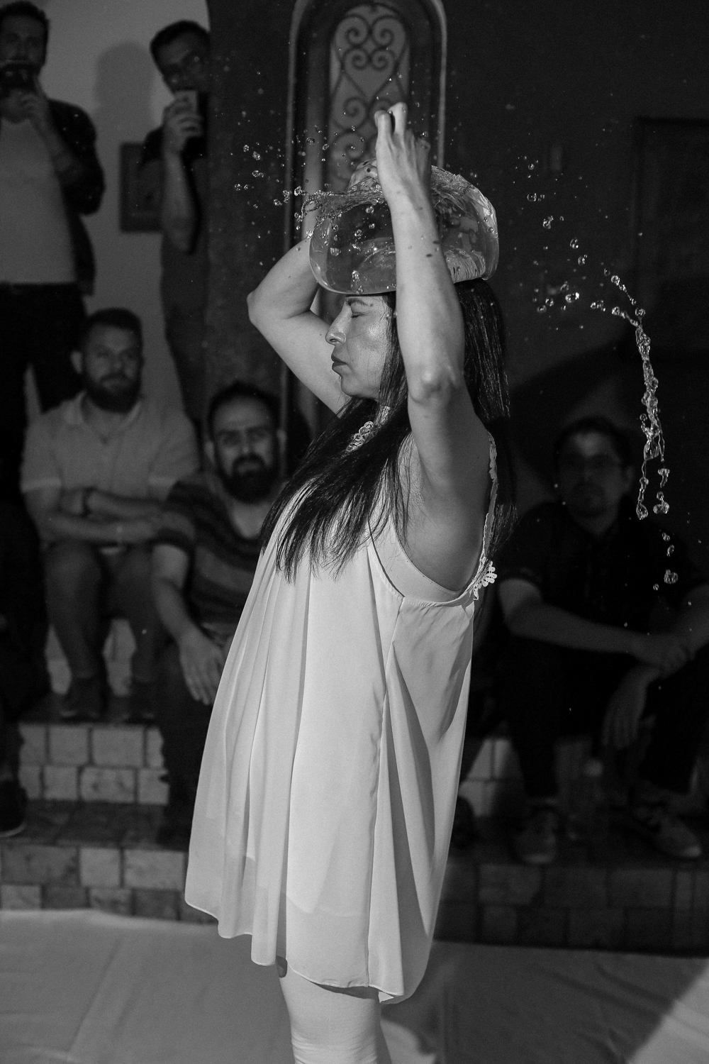 Líquido es una pieza de Arte Acción que reflexiona sobre los cuerpos de agua; es decir, la constitución interna líquida del cuerpo humano en relación con su habitad.