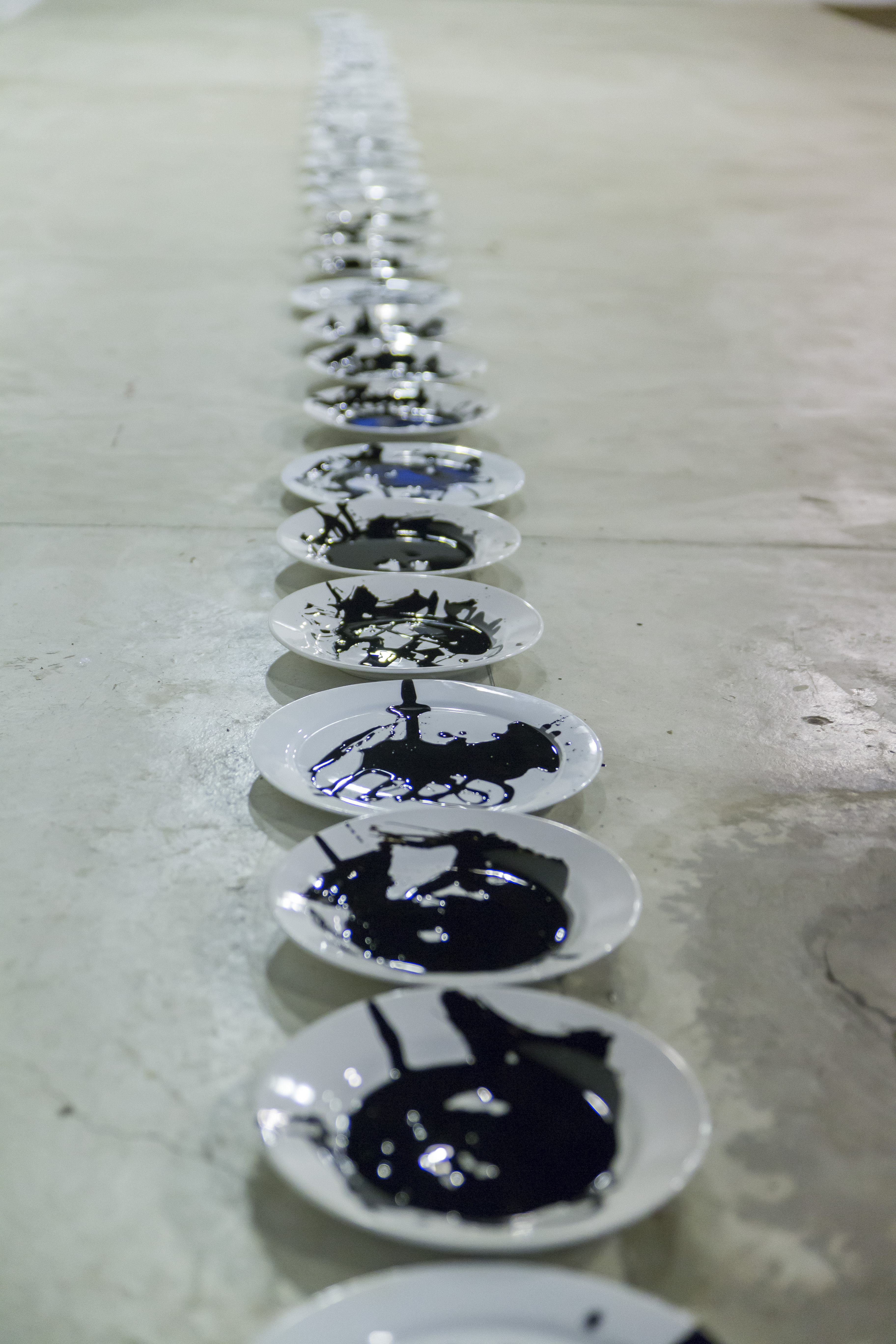 A ação faz referência à ideia de “ostracismo” e ao “óstraco”, fragmento de cerâmica (ou pedra) utilizado na Grecia Antiga, no séc V a.C, para documentar procedimentos oficiais e em contextos de banimento e exílio de cidadãos. Na ação, evoco o contexto de desterritorialização e julgamentos coletivos, existentes e tão em voga nos dias de hoje. Evoco esta qualidade do estar e permanecer estrangeiro à tudo, um corpo que não tem cabimento em lugar algum.